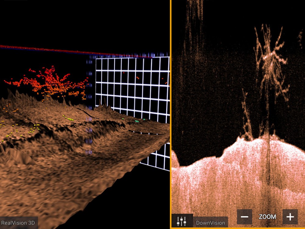 RealVision 3D Sonar represents technology anglers have been asking for since day one – the ability to see what’s below, behind, and to the sides of the boat, all at once and in three-dimensions. With blazing quad-core processor performance, RealVision 3D displays the entire underwater world—including structure, cover, fish and forage—in stunning detail. The user can readily pan, tilt and zoom the 3D image to examine from any angle, even from unique POVs like standing on the lake bottom and looking up to the bottom of the boat.