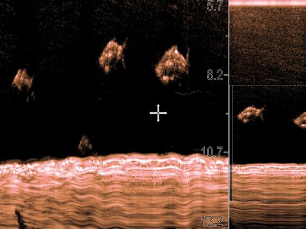 See a piece of cover you want to explore? Or perhaps a large group of bottom-hugging fish or roaming pelagic? A simple tap on the point-of-interest anywhere in the three-dimensional space allows easy way pointing that appears immediately in chart view.