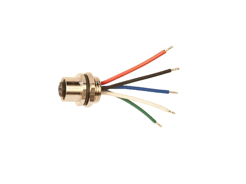 The female panel mount wired connector can easily replace any of the existing 'drop' glands on the Actisense QNB-1 to create a quick pluggable NMEA 2000 connection option.