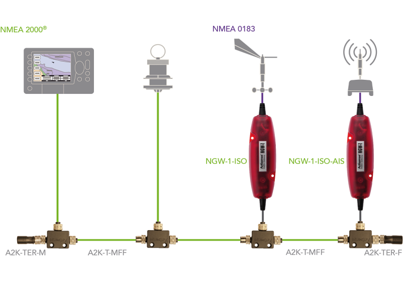 • Upgrade NMEA 0183 equipment to NMEA 2000