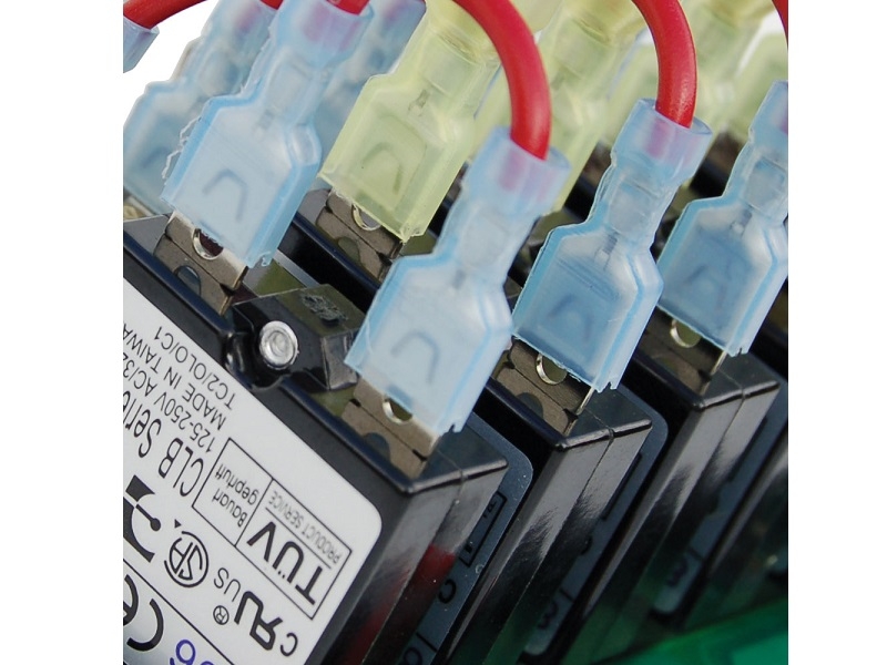 The Blue Sea Systems 4378 WeatherDeck is an 8 positions waterproof (IP67) 12V DC Circuit Breaker panel, ideal for flybridge or open cockpit installation.
