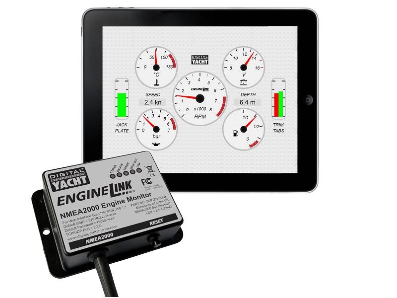 Monitor your engine data on a tablet, phone, PC, MAC or iPad using Digital Yacht’s ENGLINELink NMEA 2000 wireless gateway.