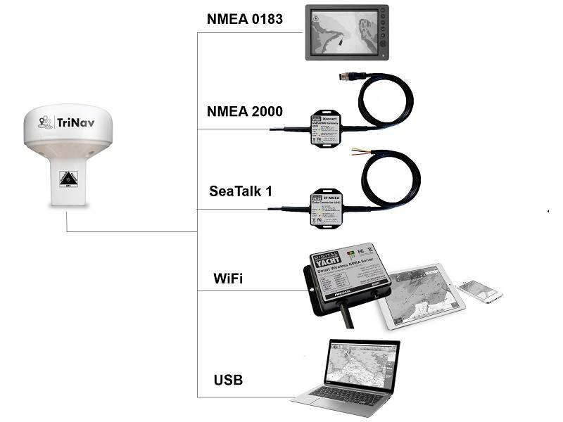 Digital Yacht have unveiled their TriNav™ GPS160, a GPS antenna with Wi-Fi gateway. This is a new, high performance positioning sensor using GPS, Glonass and the new Galileo satellite systems. Therefore, providing the best position accuracy and redundancy. Typical accuracy is better than 1m. Data can also be set to output at up to 18Hz for smooth plotter track displays. TriNav™ software technology also improves inaccuracy of position that could occur through spoofing and local interference.