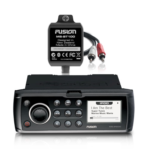O Módulo Bluetooth MS-BT100, foi testado para o ambiente marítimo e certificado com um nível de resistência à água de IP65. Este módulo pode ser ligado a qualquer Sistema de Estéreo FUSION que tenha uma entrada auxiliar, permitindo reprodução imediata de qualquer dispositivo compatível