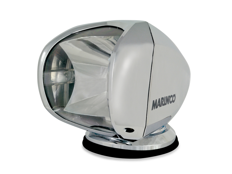 SPL-12C Spotlight is a remote controlled precision spotlight beacon from Marinco, with a chrome finishing.