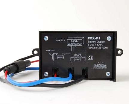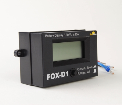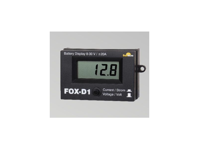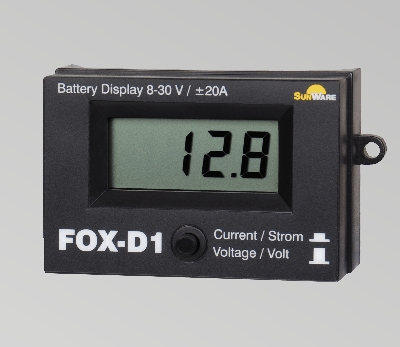 The FOX-D1 is a universal digital display that monitors battery voltage and charge/discharge current, from Sunware.