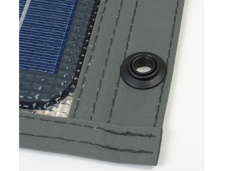 Due to the foldable design, the panel can be easily stowed away or taken away easily when traveling. The cells are supported by the only slightly flexible carrier plate made of aluminum sandwich. This carrier plate protects the cells against breakages.