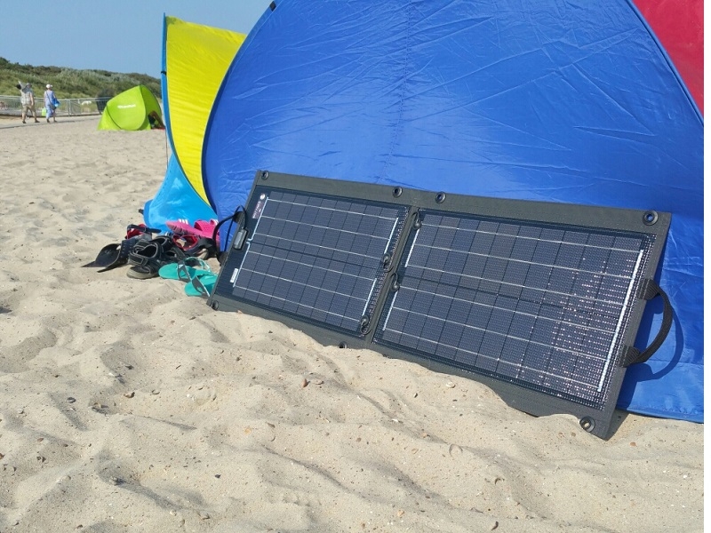 Due to the foldable design, the panel can be easily stowed away or taken away easily when traveling. The cells are supported by the only slightly flexible carrier plate made of aluminum sandwich. This carrier plate protects the cells against breakages.