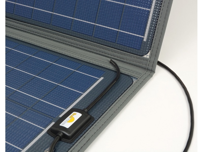 Due to the foldable design, the panel can be easily stowed away or taken away easily when traveling. The cells are supported by the only slightly flexible carrier plate made of aluminum sandwich. This carrier plate protects the cells against breakages.