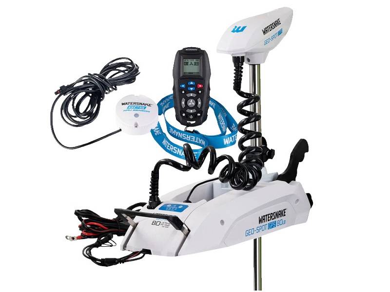The Watersnake 80lb Geo-Spot Bow Mount Motors are the next step in GPS motors with features such as Anchor Mode, Pilot Mode, Navigation Mode and Jog mode.