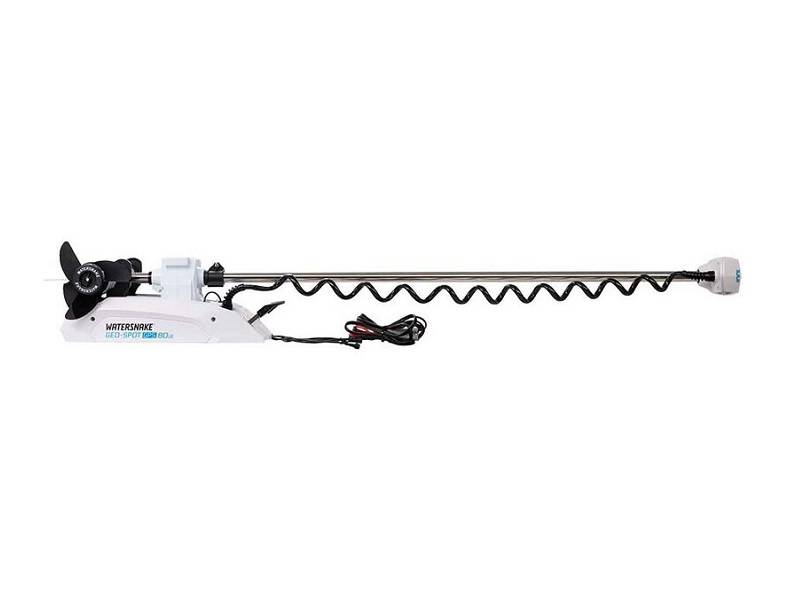 Geo-Spot GPS 80/78 is an 80lb thrust, 198cm long trolling electric bow motor from Watersnake. This model has built-in GPS and remote control and is suitable for use in salt water.