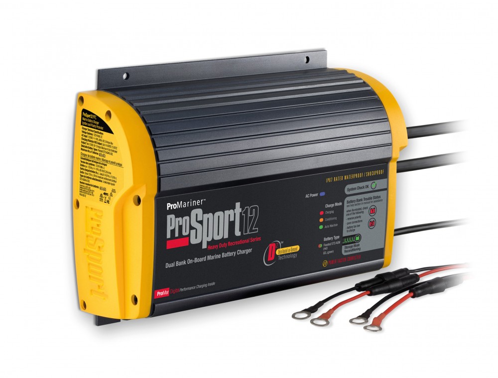 Os carregadores de baterias marítimas de bordo ProSport incorporam um controlo total digital por microprocessador. Têm a capacidade de apresentar informação, de forma automática, acerca da sua instalação com o seu exclusivo “Sistema de verificação OK” e indicadores LED para identificação de problemas nos bancos de baterias. A gama ProSport possui o mais avançado modo de economia de energia, monitorizando apenas e mantendo automaticamente o nível das baterias num estado de carga completa. O resultado representa uma reserva máxima de energia e um consumo inferior de CA e consequentemente custos de operação mais reduzidos.