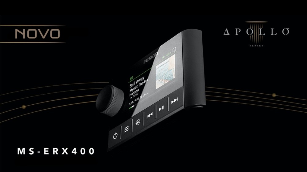 Apresentando a nova intuitiva experiência de utilizador da Fusion, o controlo remoto com fios, Apollo ERX400, com conectividade Ethernet permite aos utilizadores adicionar controlo completo do seu sistema de entretenimento áudio a qualquer zona a bordo, com controlo de toda a rede de sistemas da Série Apollo na embarcação.