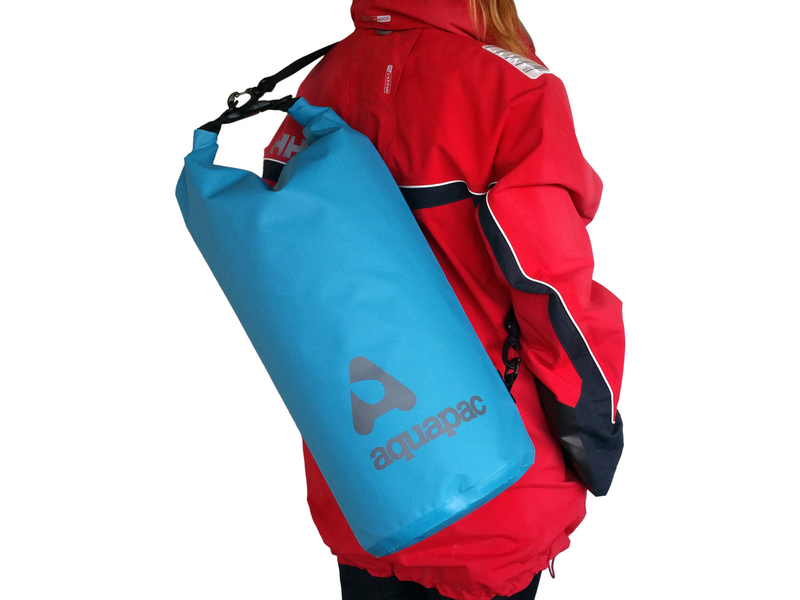 O TrailProof Drybag (azul) de 25 litros é um saco à prova de água da Aquapac, ideal para rafting, viajar, velejar ou utilização em expedições. Inclui alça.