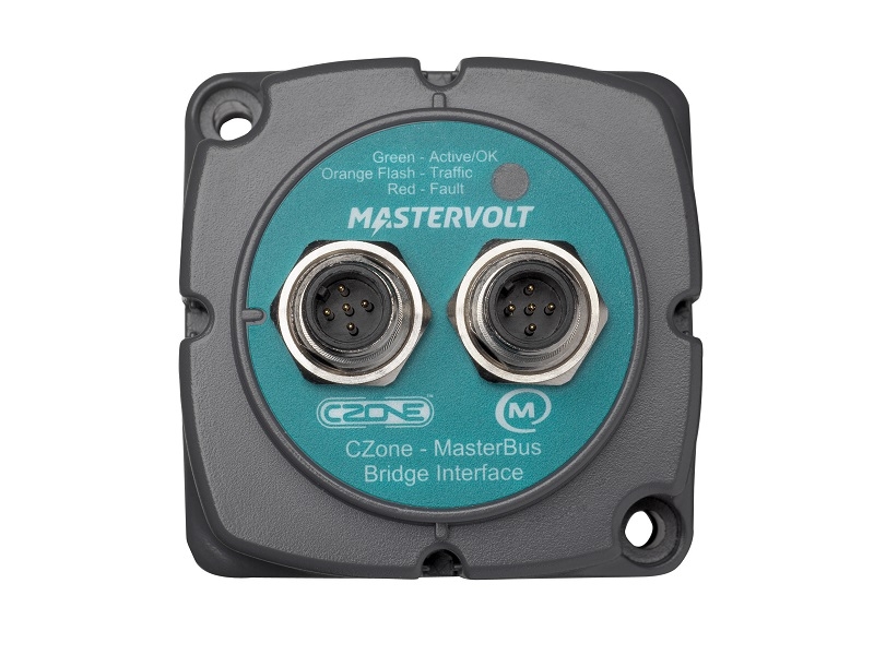 O Interface CZone-MasterBus conecta fisicamente uma rede MasterBus a uma rede CZone, permitindo a comunicação entre si e a que funcionem como um só. Com esta ligação é possível controlar e monitorizar equipamento Mastervolt a partir de displays CZone ou de marcas parceiras.