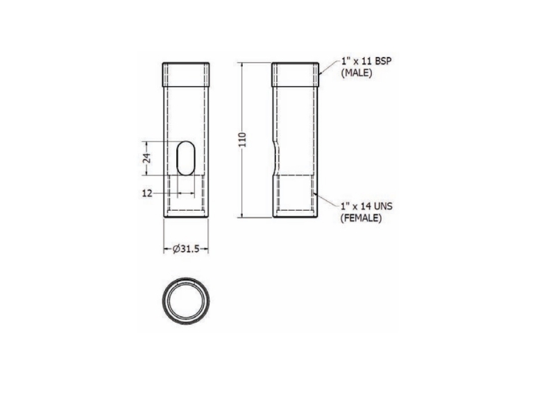 Tubo adaptador em aço inox - 1" x 14 - para ser usado com antenas P num suporte de montagem rebatível/direto.