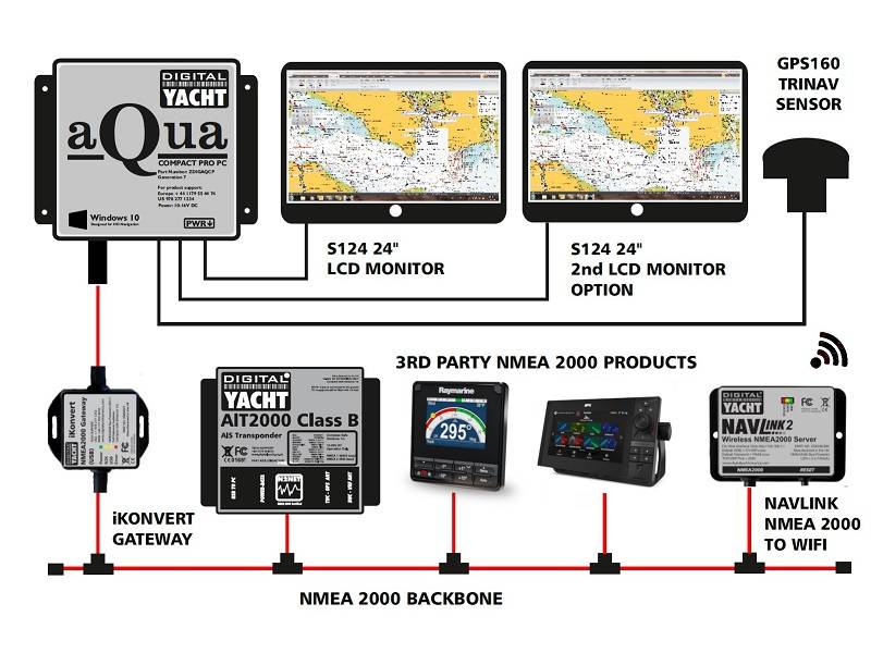 O Aqua Compact Pro é um computador marítimo supercompacto da Digital Yacht, com um processador Intel i3, disco rígido de 240GB SSD, 8GB de memória RAM DDR4, conetividade Wi-Fi e Bluetooth. Possui 4x portas USB 3.0, uma entrada HDMI e uma ranhura para cartões SD. Vem equipado com Windows 10.