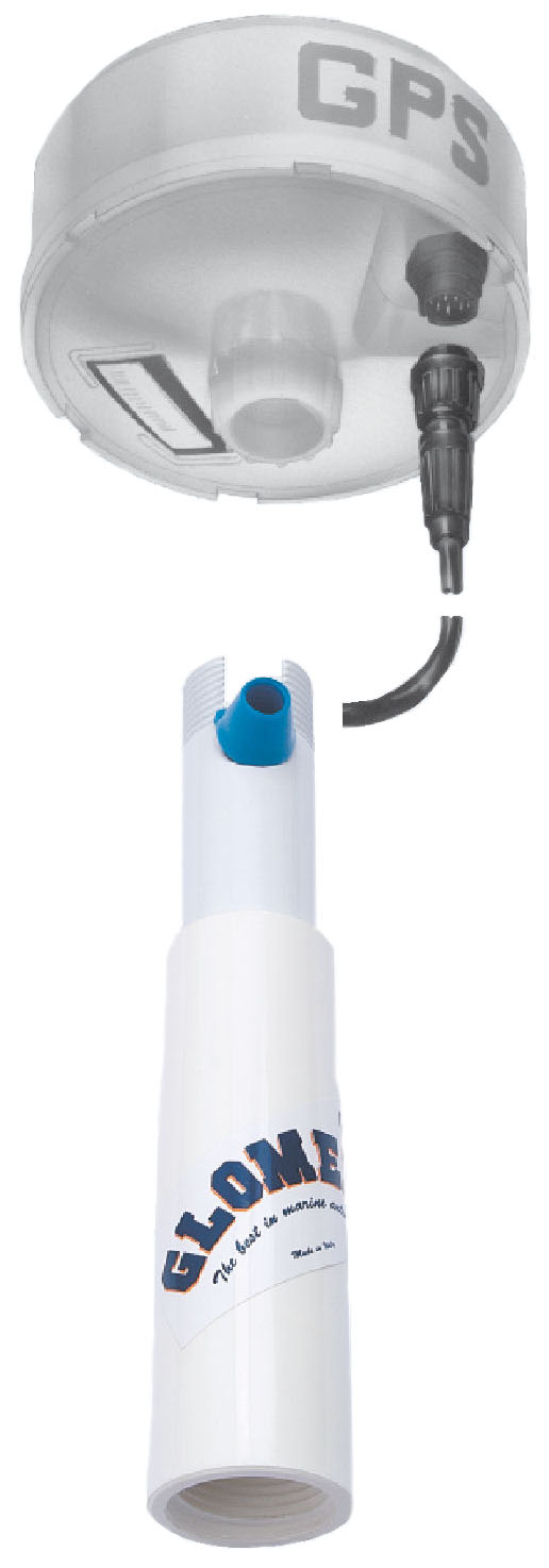 RA129 / 15 da Glomex é uma extensão para antenas GPS, com 150 mm em pintura alumínio branco e com rosca padrão de 1 "x14.