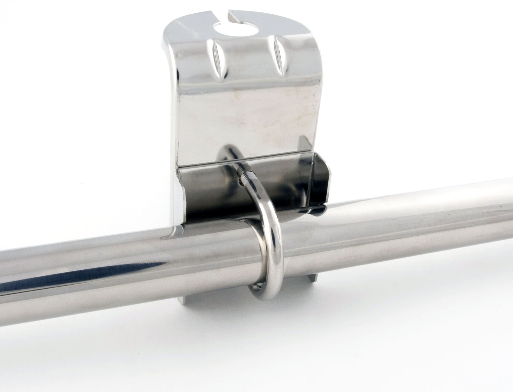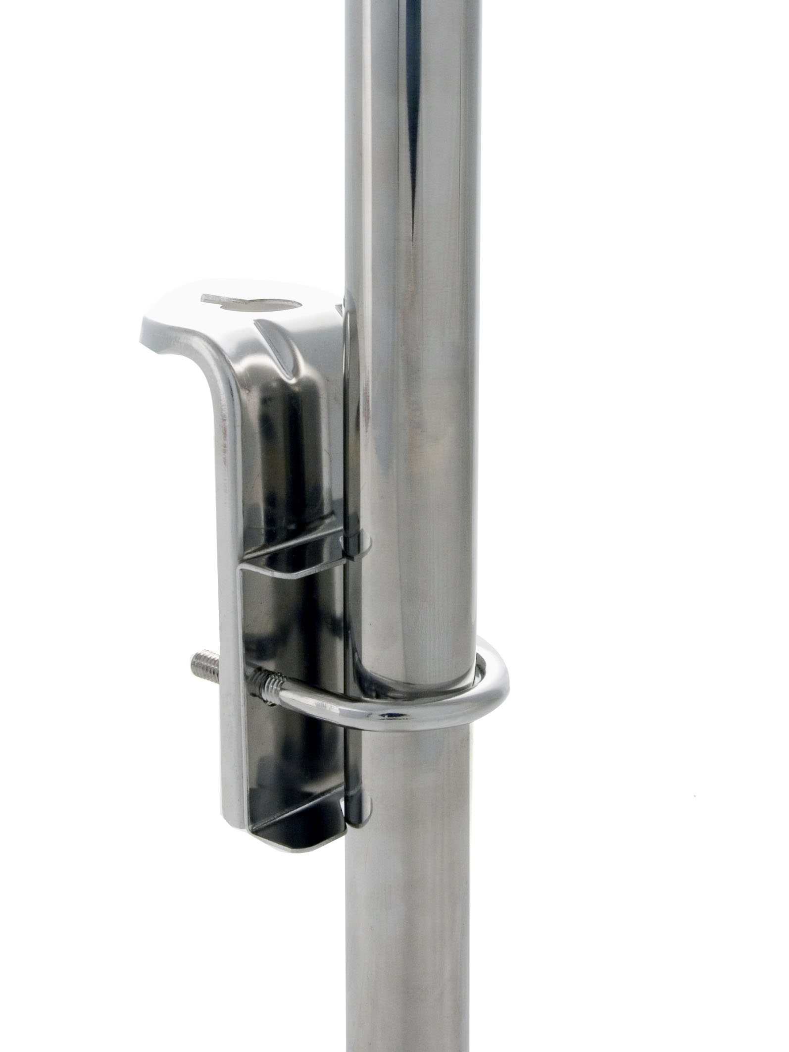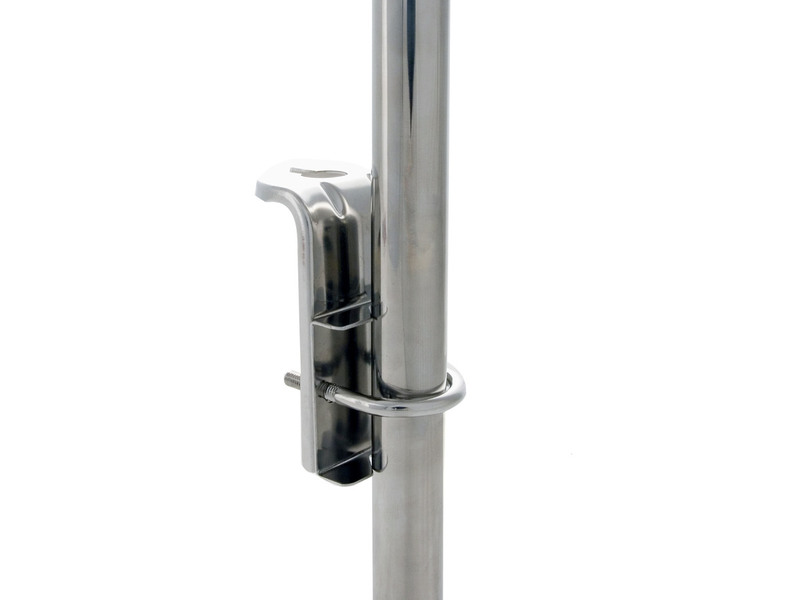 Suporte de montagem V9181 da Glomex em aço inoxidável polido para antena. Montagem vertical ou horizontal em tubos de 22 a 30 mm. Rosca padrão 1''x14.