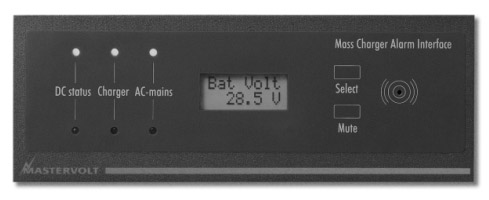 Painel de monitorização remota para leitura de voltagem/amperagem. Para carregadores de gama Mass 12/60, 12/80 e 24/50, com funções de alarme de acordo com o GMDSS.