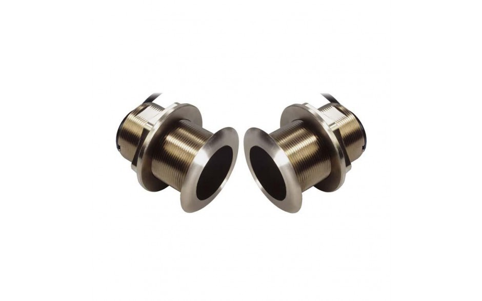 Conjunto de 2 Transdutores de baixo perfil de frequência Medium-High de Profundidade e Temperatura B175 com ajuste do elemento a 20° para montagem passa-casco.