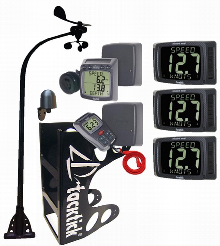 Este pack de performance inclui os displays Maxi T210, o transmissor de vento vertical T220, sistema s/fios de display de informações T106, o sistema s/fios de Velocidade e profundidade para Veleiro T103, o transdutor de Bússola para Micronet T909 e o suporte em mastro para 3 displays.