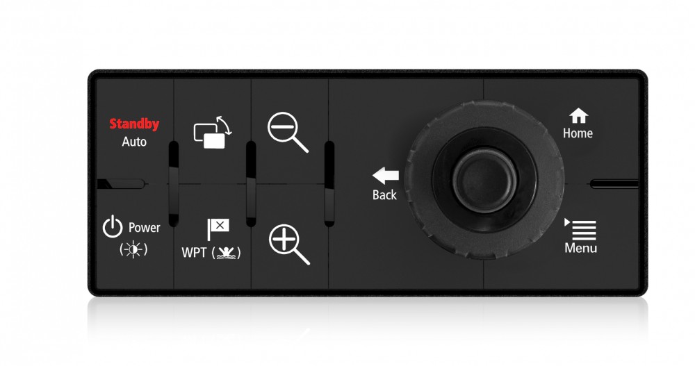 O RMK-9, de fundo completamente iluminado, inclui as teclas de função “home”, “menu”, “zoom in/out”, “gestão de janelas”, “gestão de pontos de navegação”, “on/off”, “brilho” assim como controlo do piloto automático Evolution.