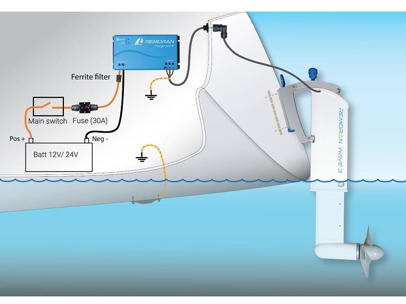 Usar o Remoran Wave 3 é extremamente simples. Basta colocar a unidade fora de bordo no carril, ligar a ficha e está pronto para sair. O carregador de 300W Remoran irá carregar as suas baterias e em simultâneo, prevenir sobrecargas. A unidade de fora de bordo pode manter-se na água durante toda a duração da viagem.