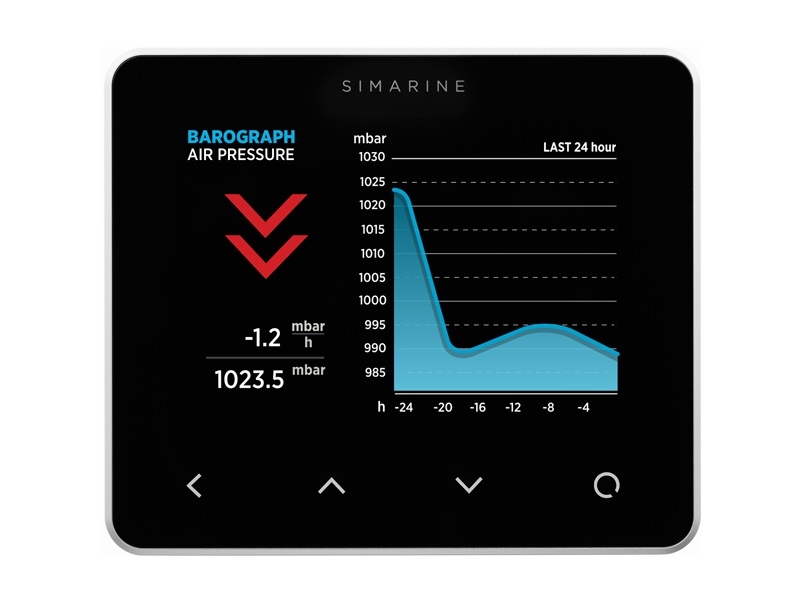 O barógrafo opcional apresenta leituras fiáveis de pressão atmosférica, tendência e histórico.