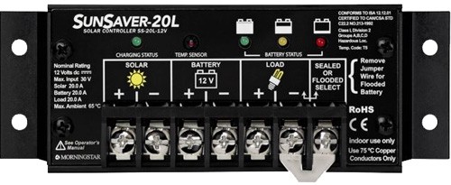SunSaver 20 é um controlador de carga solar de 12V, 20 A e 330Wp da SOLARA