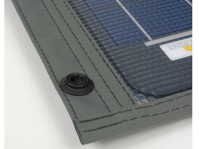 As células solares multi cristalinas de elevado desempenho estão protegidas num laminado EVA com revestimento ETFE, resistente ao desgaste dos elementos. Mesmo em situações de luminosidade difusa ou Inverno, este módulo solar produz uma elevada corrente de carga.